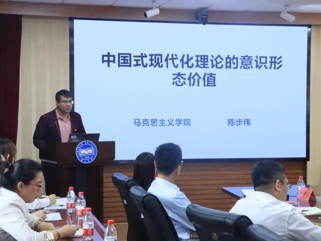 启动仪式结束后,两个党支部开展了第一次联建活动。习近平新时代中国特色社会主义思想“共学堂”马克思主义学院指导教师陈步伟讲授了《中国式现代化理论的意识形态价值》,带领全体党员深入学习贯彻习近平新时代中国特色社会主义思想,对中国式现代化理论的发展历程及其发挥的意识形态价值进行了专业层面的阐述。授课过程中,陈老师还同与会党员进行了交流。