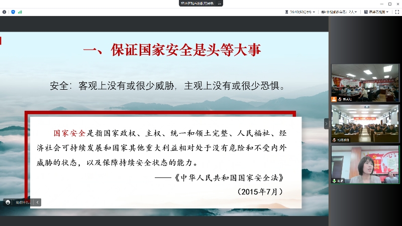 本次活动邀请了习近平新时代中国特色社会主义思想“共学堂”指导教师、马克思主义学院教师颜世晔讲授题为《全面贯彻落实总体国家安全观》的专题党课。颜世晔老师深刻解读了在新时代错综复杂的国际局势下国家安全工作的重要性,从国外反动势力的种种渗透行为到贯彻总体国家安全观要统筹推进的重点领域安全,用生动的案例警示我们要时刻保持清醒的头脑,在不断进行科技创新保持国民生产快速增加的同时,从生活和工作的方方面面时刻注意维护国家安全,从点滴小事培养新时代接班人正确的世界观、人生观和价值观,坚决维护国家安全和社会稳定。