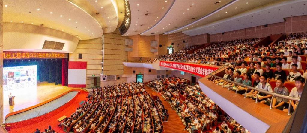 9月3日19:30,机械工程学院2023级新生入学教育大会在东大活109隆重召开。学院院长彭艳、党委书记产佳、正处级专职辅导员郝海滨、副院长姚静、副院长姚建涛、副处级专职辅导员刘祥城以及学院各系部主任、新生辅导员、综合办公室教师出席会议,学院2023级本硕博新生共计1441人现场参会,大会由姚静主持。