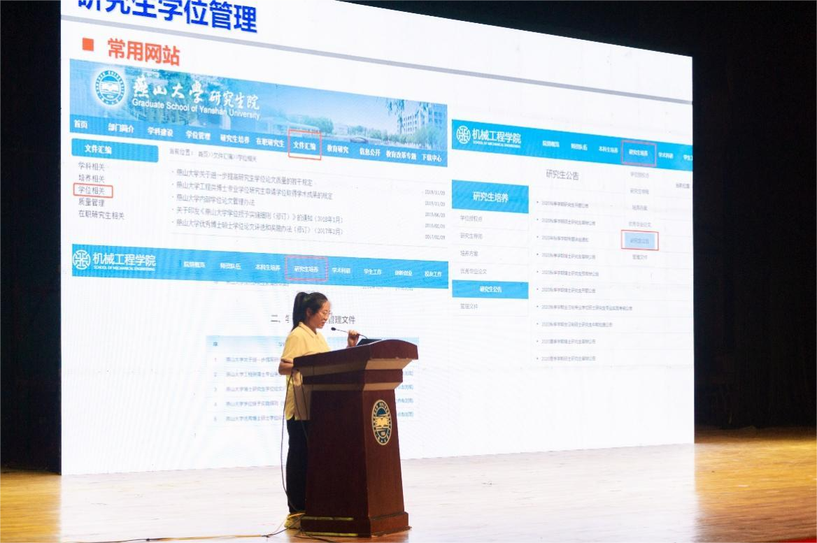 学院综合办公室陈子明、宋肖、韩志会三名教师针对研究生培养做了讲授,结合研究生课程学习与专业实践阶段的培养计划和管理规定、研究生学位管理文件、博士招生政策和出国交流学习等内容进行了详细解读。