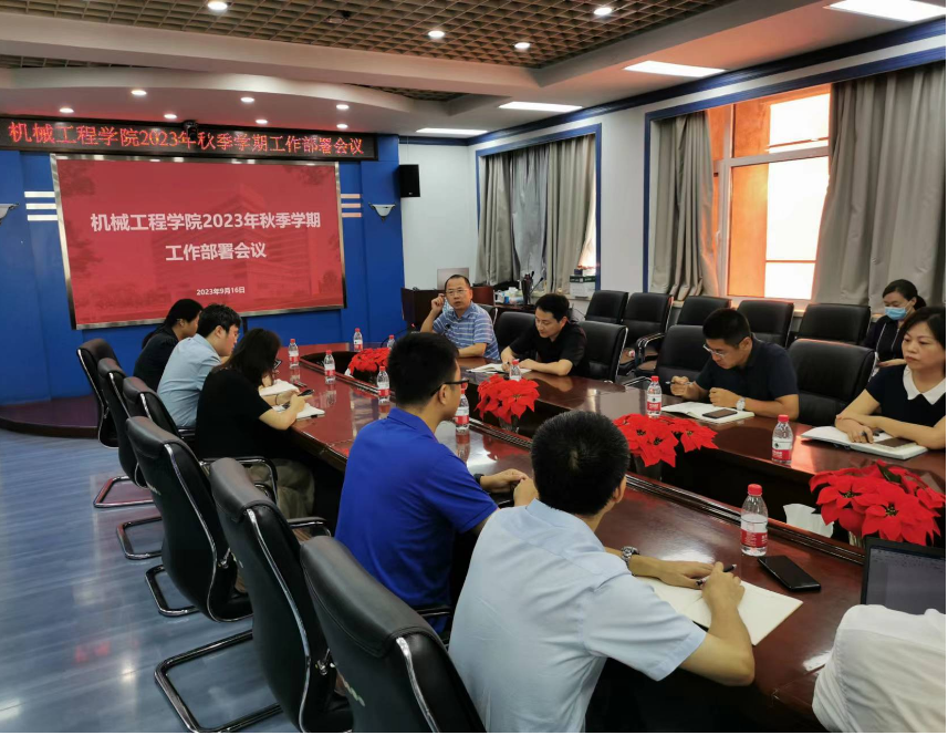 9月16日上午,机械工程学院在机械馆301会议室召开2023年秋季学期工作部署会议。学院处级领导干部、正科级秘书、系部主任、教工党支部书记等参加会议。