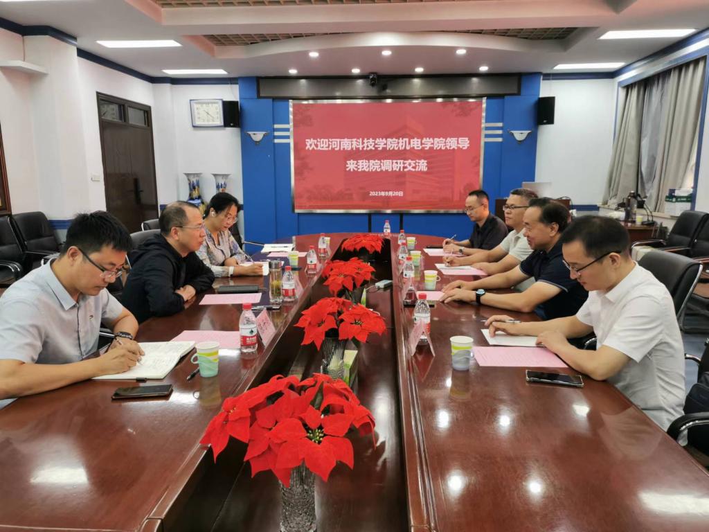 9月20日上午10点,河南科技学院机电学院院长聂福全、副院长杨文强一行4人到学院调研交流。调研座谈会在机械馆301会议室召开,院长彭艳、副院长姚静、先进制造成型技术及装备国家地方联合工程中心主任陈子明参加会议。