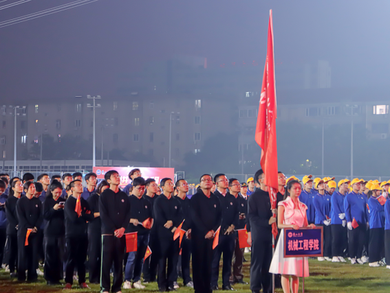 运动会开幕式于26日晚举行,学生代表身着蓝衣红帽整齐列于观众席,在夜幕中荡漾着青春的姿彩,教师代表身着黑衣,手舞红旗,英姿飒爽;由学院100余名本科生参与的展演节目也收获了阵阵掌声。我院师生代表精神抖擞、斗志昂扬,展现出学院的良好风采。