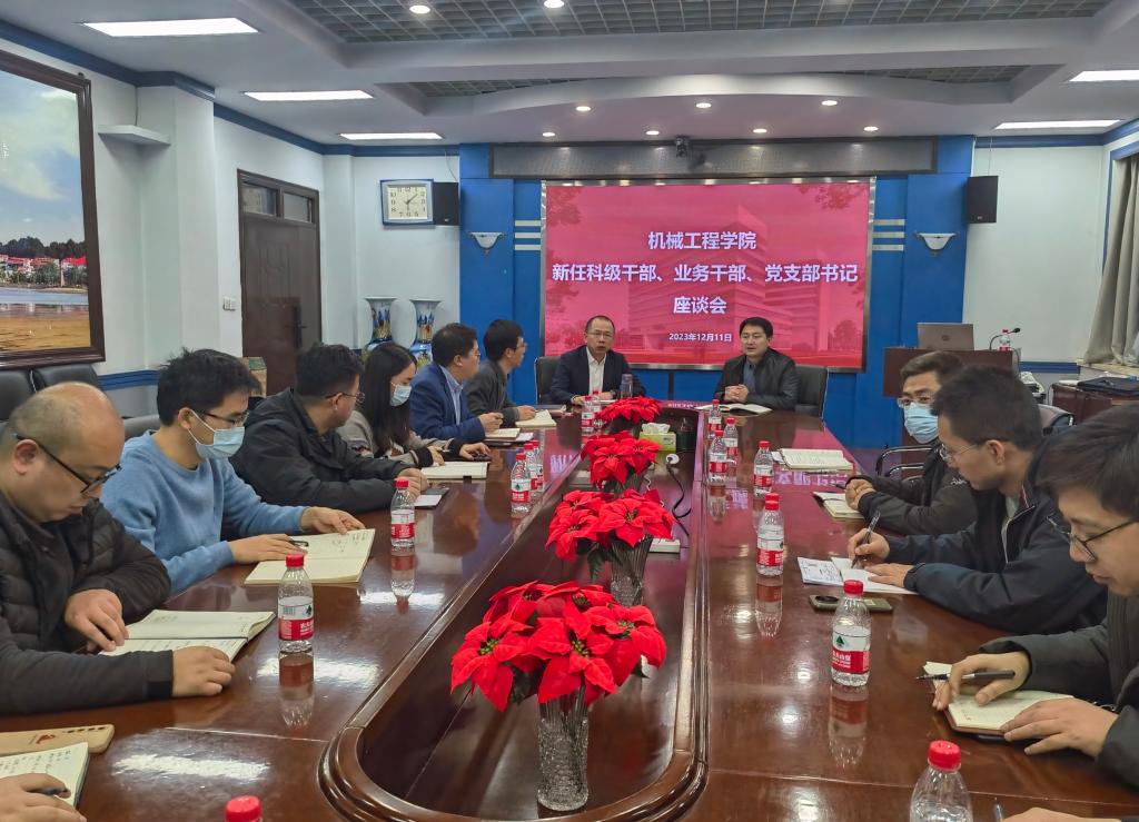 为进一步强化纪律意识、激励新任干部担当作为,12月11日下午,机械工程学院召开新任科级干部、业务干部、党支部书记座谈会。学院党委书记产佳主持会议,全体新任科级干部、业务干部、党支部书记参加会议,院长彭艳出席会议。