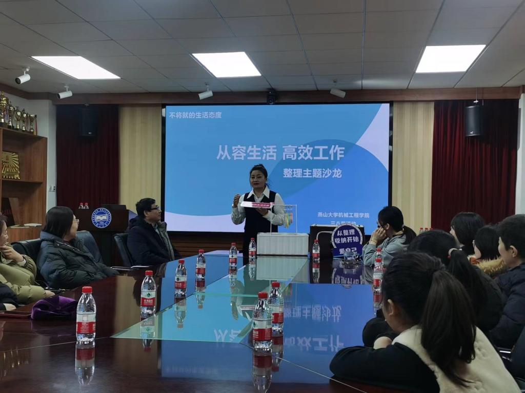 为庆祝第114个“三八”国际劳动妇女节来临,进一步丰富全院广大女教工的文化生活,改变陈旧的收纳整理理念,愉悦身心,开拓工作生活新局面,3月8日下午,学院工会在机械馆327举办“悦纳自己 携手同行”主题活动——整理收纳分享沙龙。