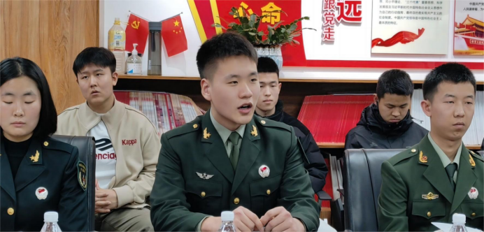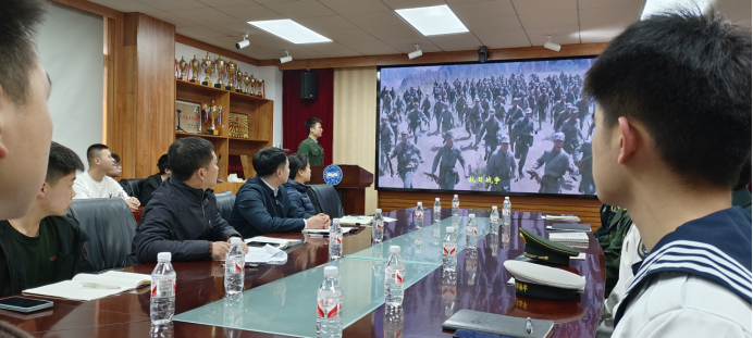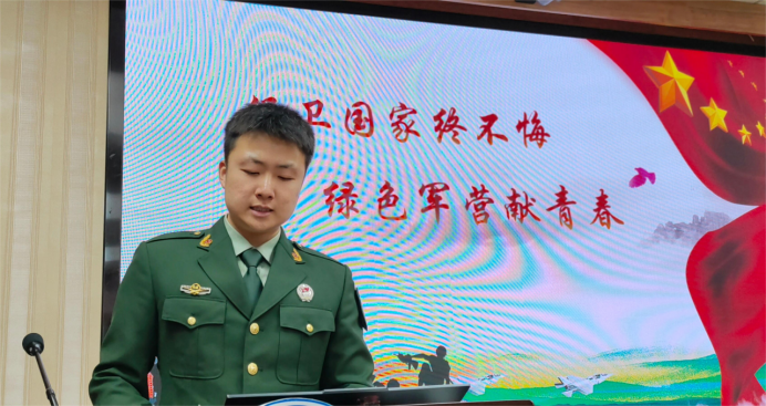 武警退役2022级本科生顾佳兴按照2024年国家参军入伍相关政策,就入伍前景、条件待遇、征兵程序等相关内容,结合自身服役经验做了政策宣讲;陆军退役2022级本科生王志强向在场同学们分享了自己应征报名、政审、体检和新兵训练等环节的切身体会,重点介绍了自己不断成长进步的过程,鼓励在场同学要勇敢的走进军营历练自己。随后,与会人员一同观看了学院制作的参军入伍宣传视频及国家安全教育视频。