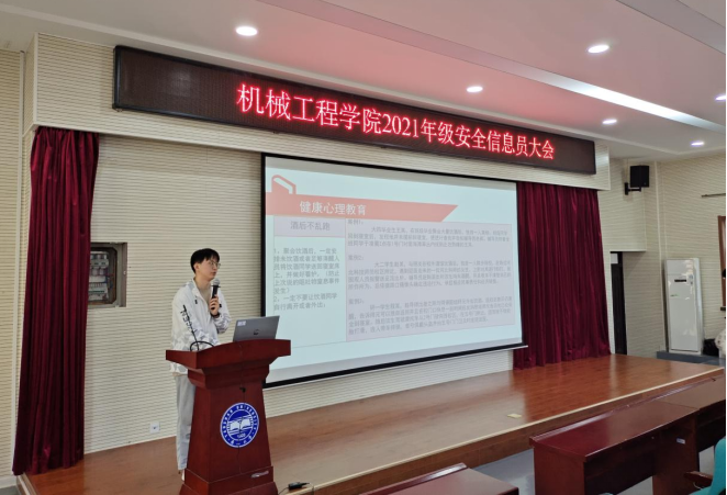 为进一步增强学生安全意识,提高学生信息处理能力,营造良好校园环境,机械工程学院2021级本科年级组于2024年4月30日在机械馆J3报告厅召开安全信息员会议,各班宿舍长参加培训。