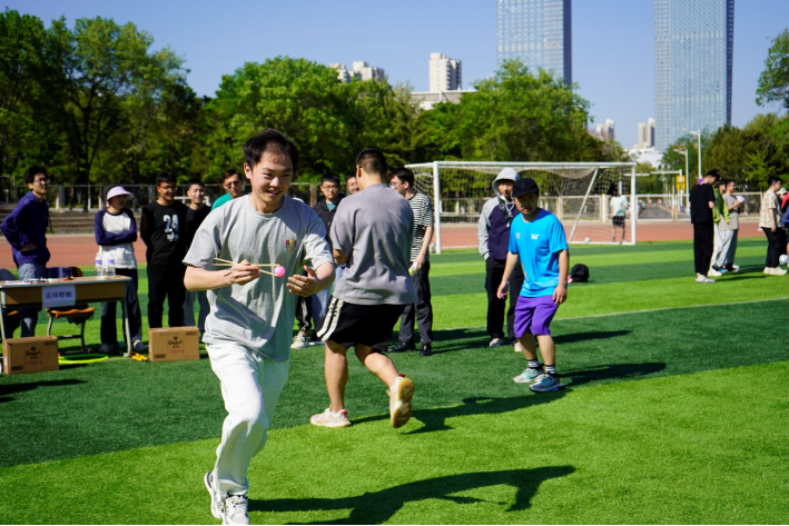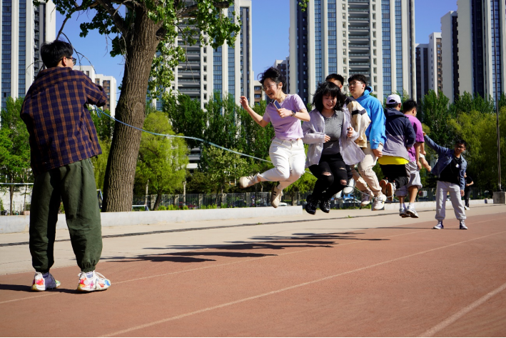 在比赛中,经典项目“集体跳大绳”的各位选手动如脱兔、衣带飞舞,汗水中洋溢着青春气息;“沙包投掷”的选手聚精会神,反复丈量胜利的长度;创意十足的“达芬奇密码”将团队智慧凝聚到一起,大家桴鼓相应,彰显燕大学子的团队精神。此外,学院也用心为每位参赛老师和同学搭建了礼物站和补给站,领取奖品的同时也能补充能量。