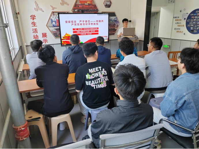 为加强党支部纪律建设,教育引导学生干部知纪、明纪、学纪、守纪,5月26日,“寓”见风华一站式学生社区功能型党支部联合学生党支部开展“学生干部党纪学习教育”研讨会活动,活动由机械工程学院本科生第一党支部书记郭雨主持,机械工学部研究生第一党支部、本科生第一党支部全体党员及入党积极分子参加。