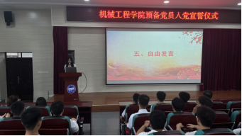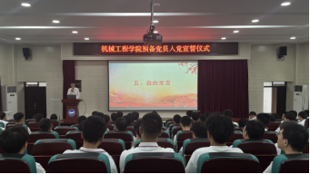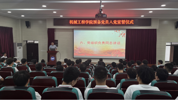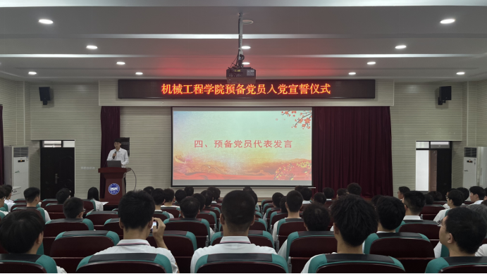 为庆祝中国共产党成立103周年,重温党的光辉历程、传承党的优良传统,激励广大党员师生担当作为,鼓舞激情斗志,2024年7月1日下午,机械工程学院预备党员入党宣誓仪式在机械馆J3举行。机械工程学院党委书记产佳、学院党委委员郝海滨、党支部书记、优秀党员代表及全体新发展预备党员参加仪式,学院本科生第一党支部书记郭雨主持仪式。
