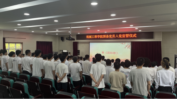 伴随着雄壮的《国际歌》,入党宣誓仪式拉开帷幕。郭雨宣读机械工程学院党委关于接收田伟江等111名预备党员的决议。