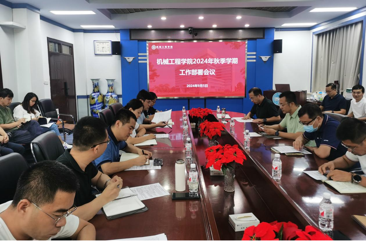 9月5日下午,机械工程学院在机械馆301会议室召开学院2024年秋季学期工作部署会议。学院党委处级领导干部、正科级秘书、系部主任、教职工党支部书记等参加会议。院长彭艳主持会议。