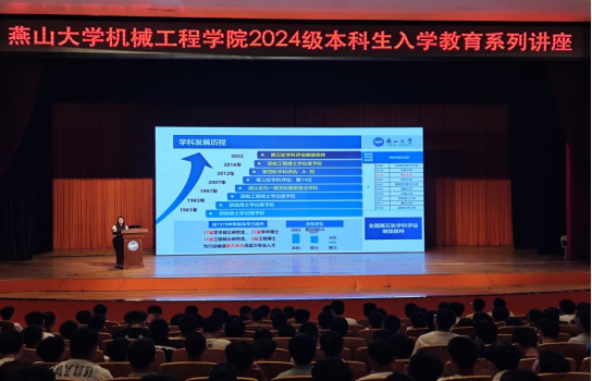 9月7日下午15:00,机械工程学院2024级本科新生入学教育系列讲座在东校区大学生活动中心109室举行,讲座由2024级本科生辅导员孙立达主持,全体2024级本科生参会。