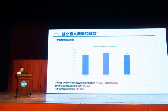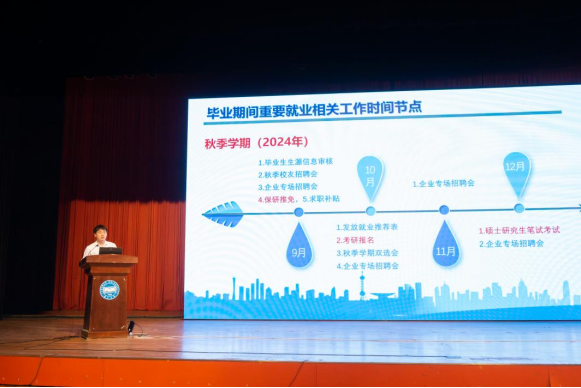 王成斌从毕业期间重要事件节点、如何选择考研院校、就业手续办理流程三个方面进行就业的形势分析,他特别强调了秋招的重要性,鼓励同学们把握机会,实现高质量就业。