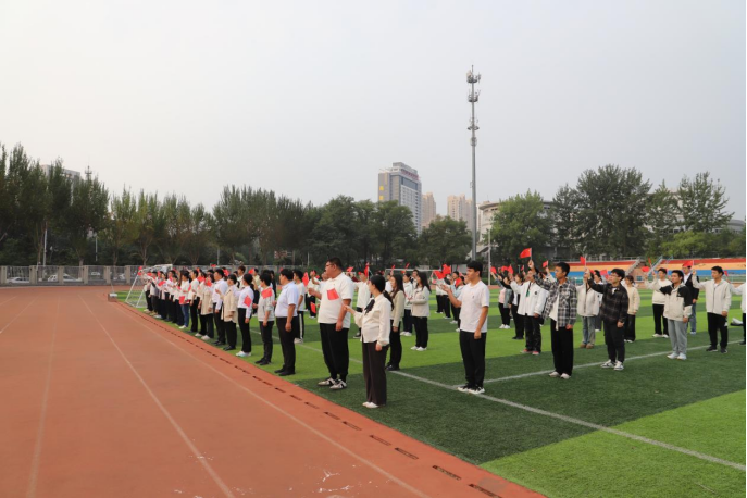 活动尾声,全体师生挥动手中的国旗共同唱响《歌唱祖国》,以嘹亮歌声向祖国深情告白,共同书写着对祖国的无限忠诚与热爱,彰显了新时代青年的蓬勃朝气与家国情怀。