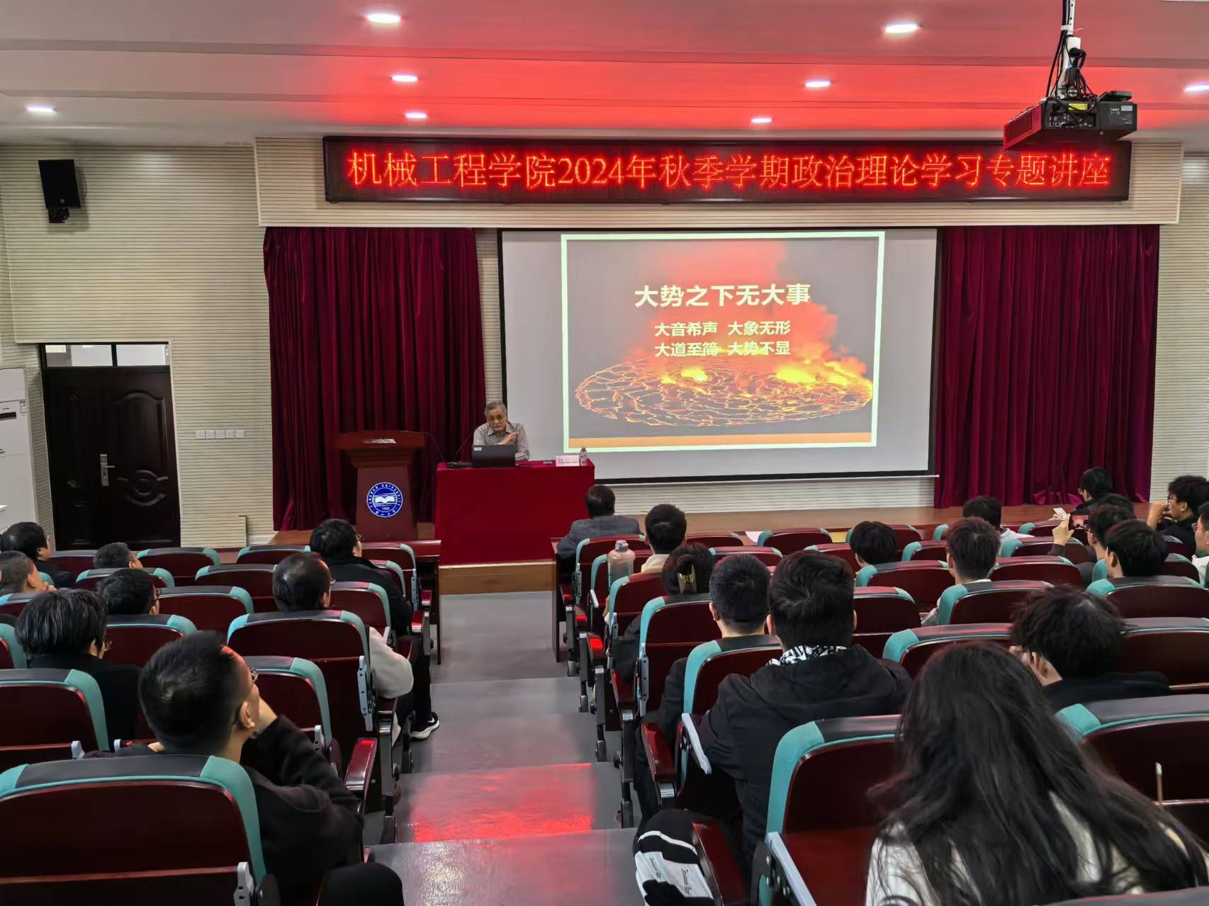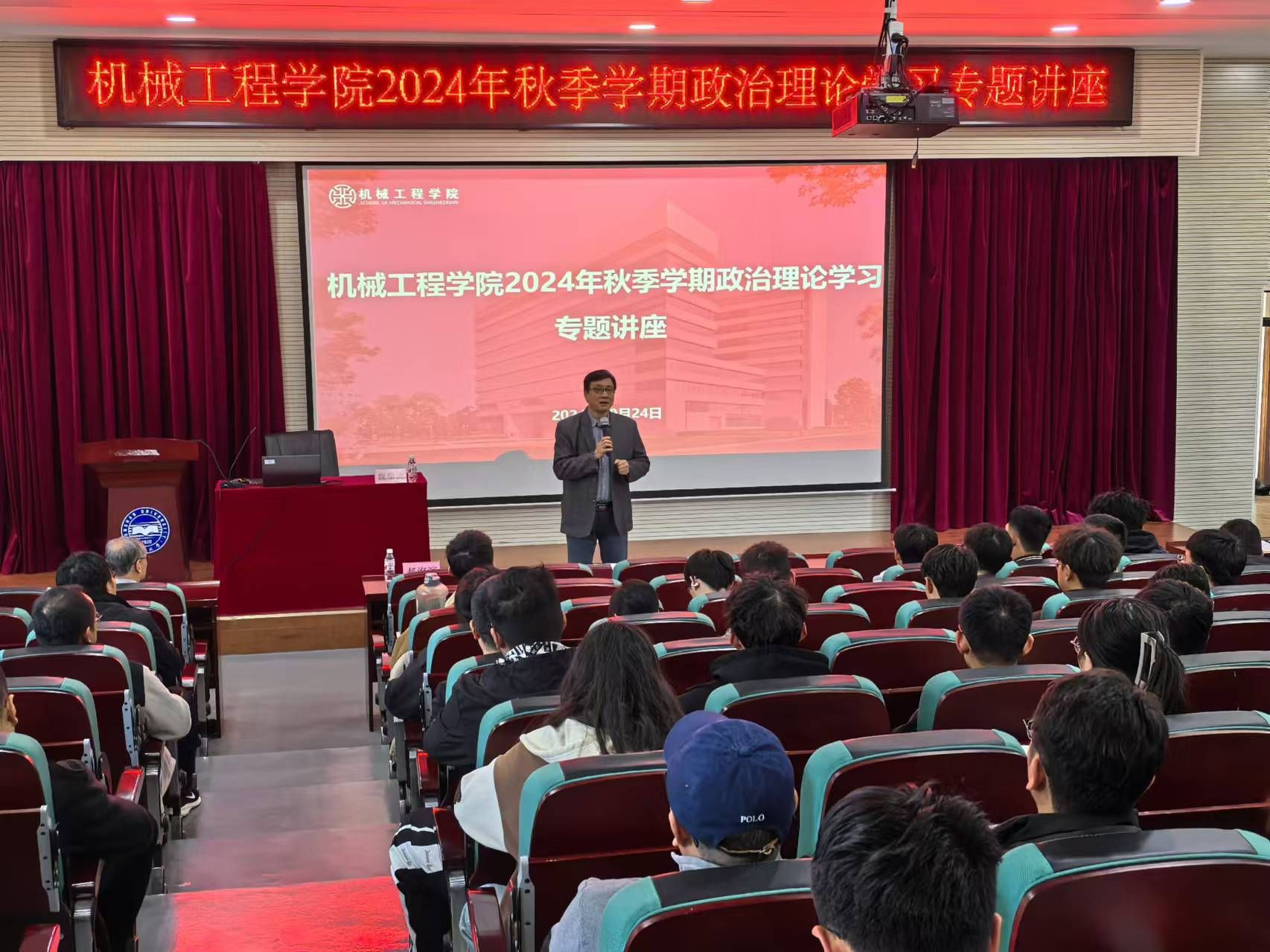 10月24日下午,机械工程学院分工会在机械馆J3报告厅面向全院教职工举办政治理论学习专题讲座。讲座邀请了乌鸦传媒马克思主义学院退休教授魏黎波作专题报告,学院正处级专职辅导员、分工会主席郝海滨主持本次活动。
