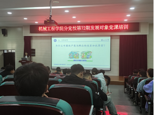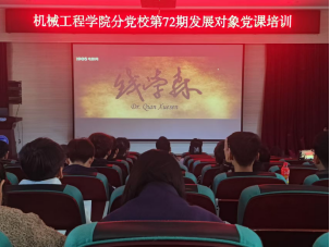 为提高学生党员政治觉悟和思想认识,增强党性修养和党性观念,推进新时代党的建设新的伟大工程,2024年10月10日至31日,机械工程学院分党校开展第71期预备党员、72期发展对象党课培训。本次培训先后邀请到机械工程学院苏小航老师、马克思主义学院包巍教授、马克思主义学院王新华教授、马克思主义学院郭清秀教授进行授课,学院111名预备党员、55名发展对象参加此次培训。