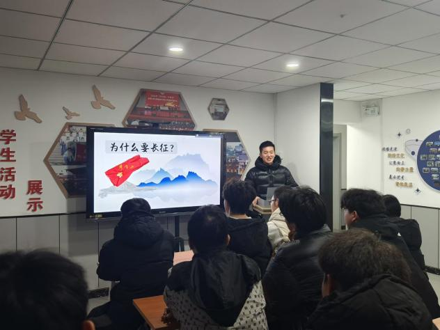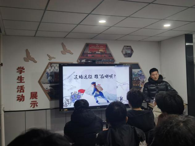 为深入开展学习贯彻习近平新时代中国特色社会主义思想主题教育,传承红色基因、学思践悟中国共产党人精神谱系,推动党史学习教育常态化长效化,2024年11月24日,机械工程学院本科生第一、二党支部于“寓”见风华“一站式”学生社区开展“长征精神”专题教育学习,本次活动邀请到“机械工程学院党委—马克思主义学院党委”习近平新时代中国特色社会主义思想“共学堂”研究生后明强主讲,活动由本科生第一党支部书记郭雨主持,本科生第一、二党支部中共党员及共青团员参加。