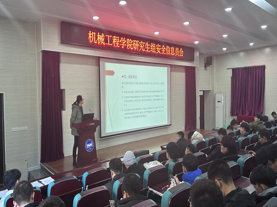 为进一步强化校园安全管理,消除安全隐患,增强学生安全意识,近日,机械工程学院各年级组分别召开安全工作会议,全体安全信息员参会,会议由各年级辅导员主持。