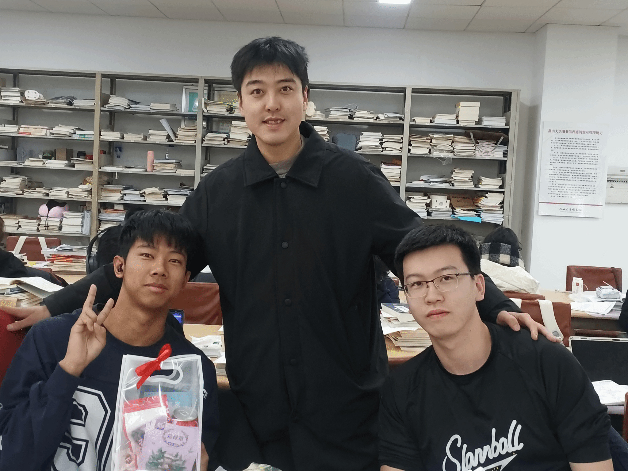 辅导员王世运、周士琦在宿舍和图书馆进行考研慰问