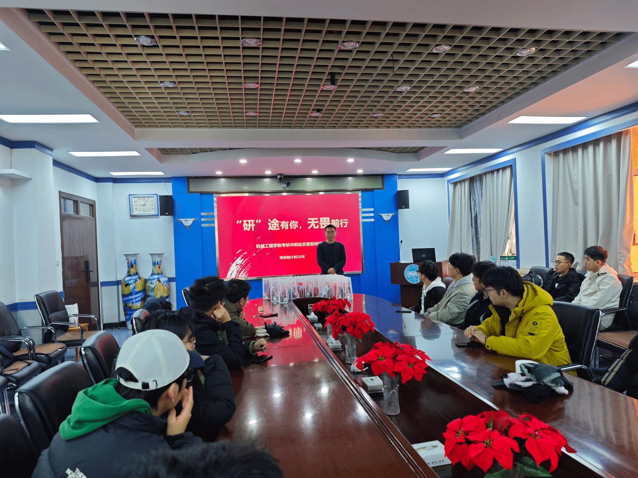 2025年全国硕士研究生招生考试日期将至,为表达学院关心关爱,帮助考研学子坚定信念、增强信心,学院组织开展系列考研学子关心关爱慰问活动,在寒冷的冬日为考研学子送上一丝暖意。此次活动于2024年11月29日至12月2日开展,汇聚了学院各系部教师代表、2021级本科生辅导员以及全体考研学子的热情参与。