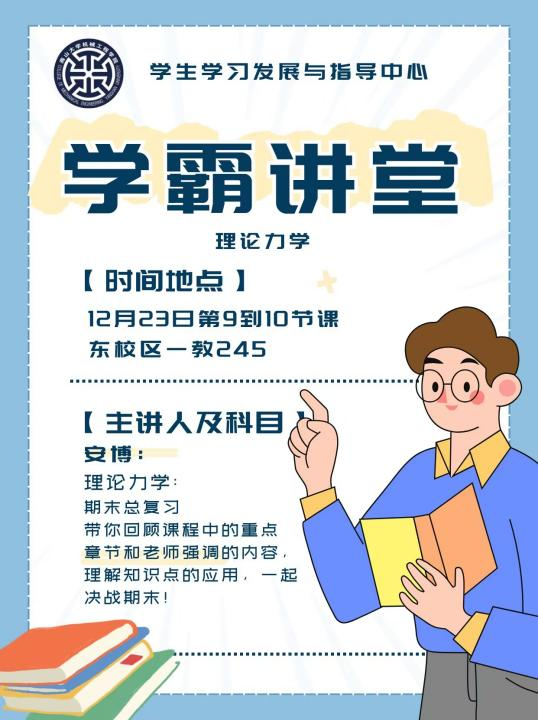 此次学霸讲堂活动不仅为同学们提供了一个复习备考的平台,更激发了大家的学习热情和积极性。同学们纷纷表示,通过参加此次活动,自己对理论力学的理解和掌握更加深入,对即将到来的期末考试也更加有信心。