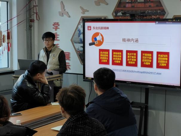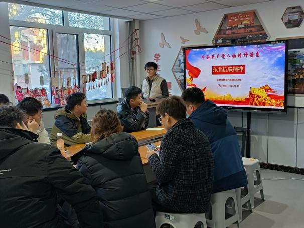 为深入挖掘和传承中国共产党精神谱系内涵,12月28日,冶金机械系研究生第四党支部、本科生第一党支部、本科生第二党支部党员于“一站式”学生社区开展东北抗联精神解读座谈活动。郭雨以“九一八事变”为起点从东北抗日联军的组成、东北抗日联军的意义、东北抗联精神的内涵三个部分进行阐述,详细介绍了东北抗日义勇军在白山黑水间英勇抗击侵略者的爱国主义精神。通过传承和弘扬东北抗联精神,激发学生党员的爱国热情,培养学生党员坚韧不拔、勇往直前的精神品质,提高学生党员应对各种困难和挑战的能力。