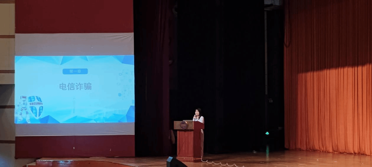李宥臻从电信诈骗、消防安全、交通安全、诚实守信、心理健康5个方面分析当前学生面临的安全隐患,借用相关案例警示全体同学,并就以上安全隐患提出了具体的防范措施。