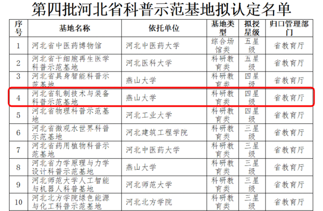 近日,河北省科学技术厅公示了“第四批省级科普示范基地”认定名单,依托国家冷轧板带装备技术工程中心申报的“河北省轧制技术与装备科普示范基地”成功获批。