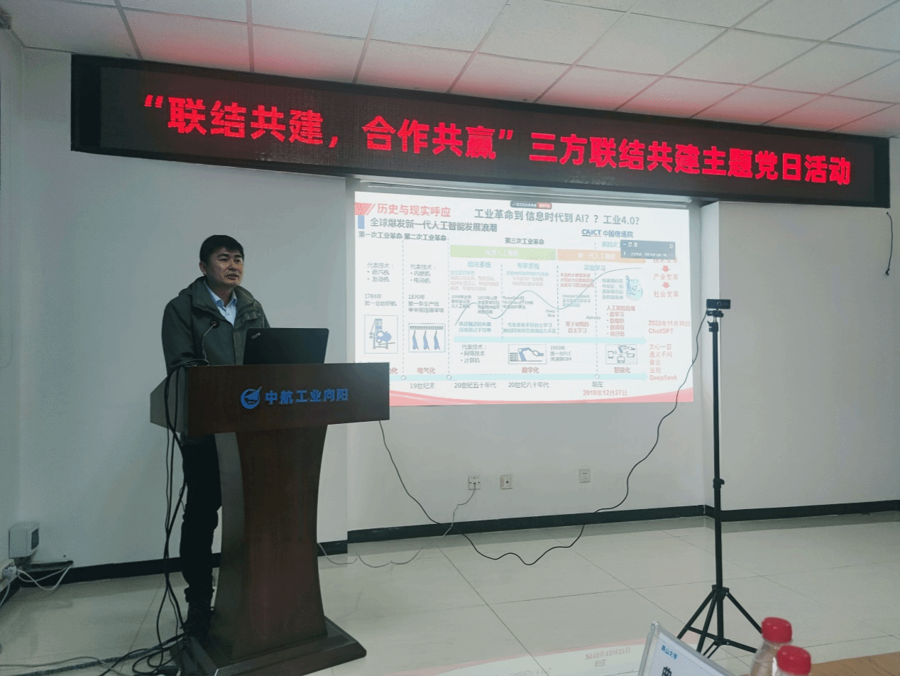 为强化党建引领,深化产学研合作,机械工程学院机械制造及其自动化系党支部(以下简称机械工程学院机制系党支部)联合中国航空工业集团保定向阳航空精密机械有限公司职能第二党支部(以下简称向阳公司第二党支部)、河北大学化学与材料科学学院有机化学教师党支部(以下简称河大有机化学党支部)开展“创新领航·高端装备制造业产学研合作研讨会”暨党建联建签约活动。