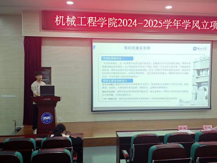 为全面落实学校学风建设相关要求,深化学院教育管理与学生自我教育的有机融合,由乌鸦传媒机械工程学院学生学习与发展指导中心精心组织策划的学风建设立项中期检查答辩会,于4月29日晚7点在机械馆J3成功举办。四位评委老师郭雨、李璐、陈嘉硕、孙立达莅临现场,为各项目“把脉问诊”;优秀结项负责人杨铠睿、刘增鑫受邀分享经验,与24组答辩团队共同奏响学风建设的奋进乐章。