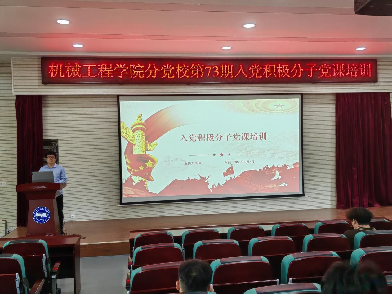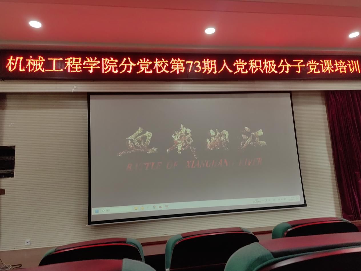 为筑牢入党积极分子理想信念根基,传承革命先辈精神,锤炼对党忠诚品格,2025年5月7日,机械工程学院分党校组织第73期入党积极分子集中观看重大革命历史题材影片《血战湘江》。本次培训由郭雨主持,第73期入党积极分子参加。