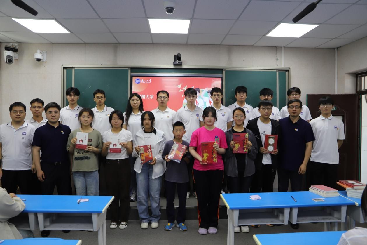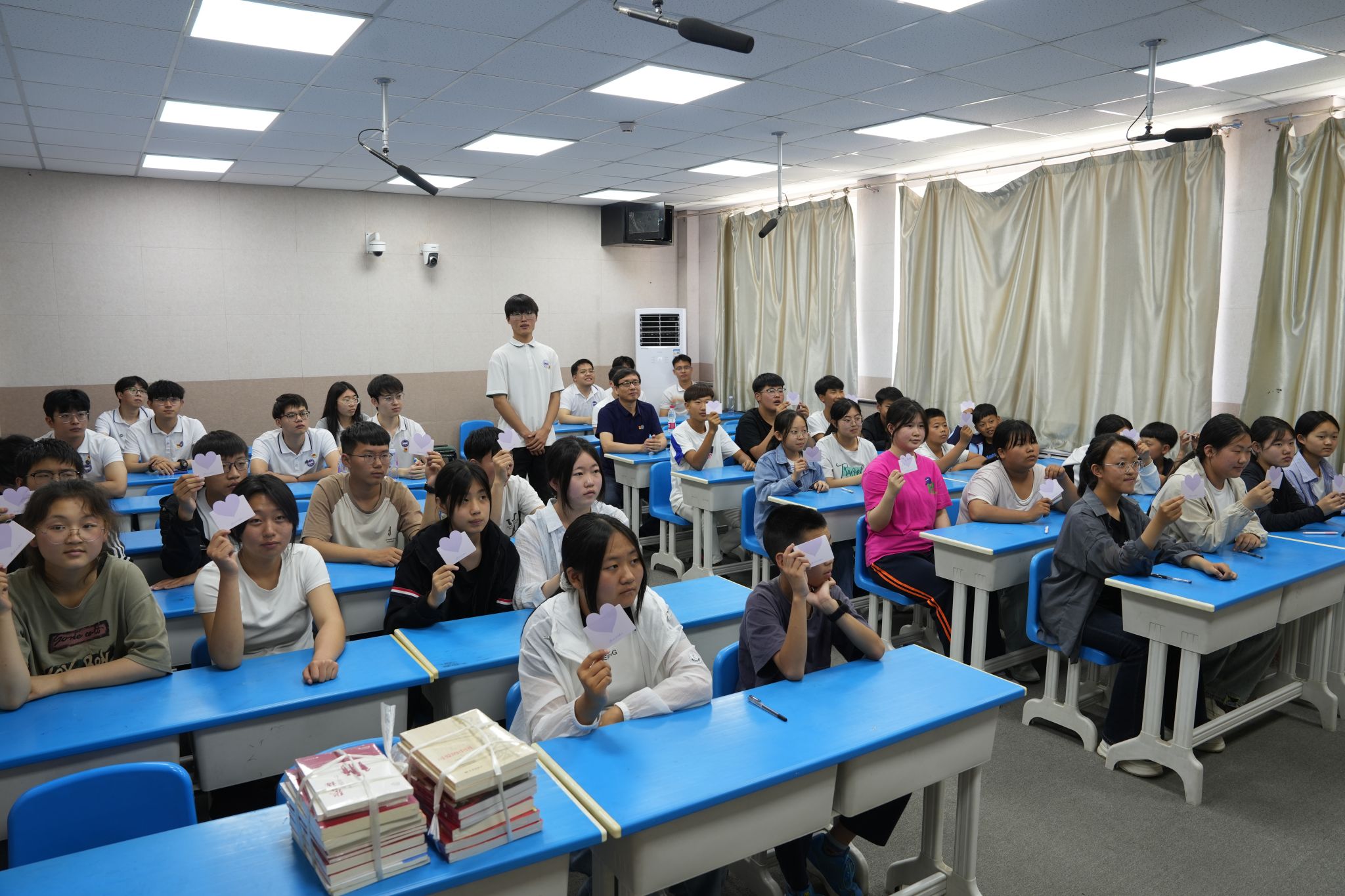 讲课后,活动进入温馨且意义非凡的环节。支部成员为学生们发放精美的贺卡,鼓励他们大胆写下自己未来的理想,无论是成为救死扶伤的医生、教书育人的教师,还是探索宇宙的科学家,每一份梦想都得到了充分尊重与肯定。随后,机械工程学院机电系研究生第二党支部书记郝海滨发表讲话,他强调知识是改变命运的钥匙,鼓励学生们通过阅读拓宽视野、增长才干。在郝海滨的主持下,图书捐赠环节正式开始,一本本承载着希望与祝福的图书送到学生手中,为他们打开通往更广阔世界的窗口。