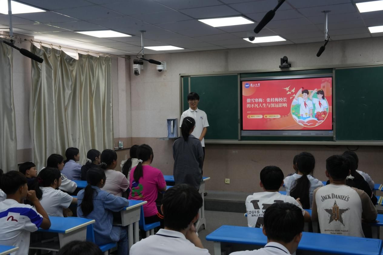 活动伊始,“寓见风华”功能型党支部成员石华宇化身书籍讲解人,以“傲雪寒梅:张桂梅校长的不凡人生与深远意义”为主题,与兰亭中学的学生们展开了一场心灵对话。石华宇从张桂梅校长的苦难童年讲起,娓娓道来她如何在逆境中坚守教育初心,创办华坪女子高级中学,帮助无数山区女孩走出大山、改写命运。讲解过程中,石华宇结合丰富的案例与生动的细节,深刻诠释张桂梅校长极具奉献精神的教育理念,展现她将个人理想融入国家教育事业的崇高境界。在热烈的互动环节,学生们积极提问,眼中闪烁着对张桂梅校长的敬仰与对知识的渴望。这场互动如同一颗种子,在孩子们幼小的心灵中播撒下逐梦的火种,点燃了他们对未来的无限憧憬与热忱。