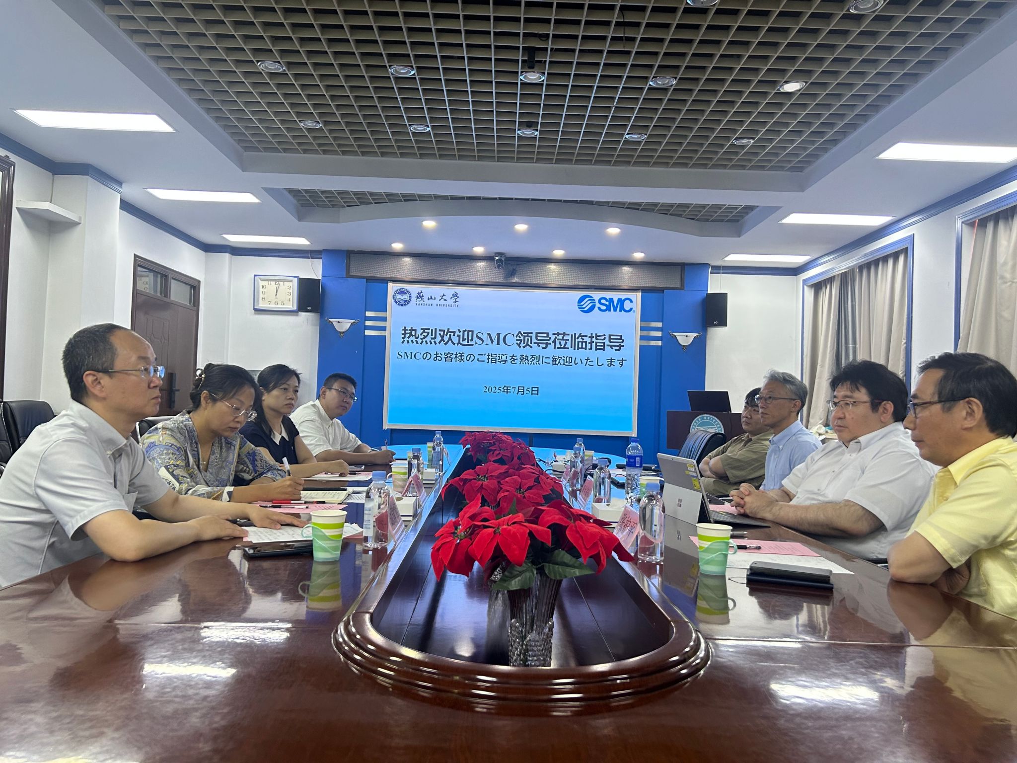 7月5日,SMC株式会社奥平宏行部长、只野琢也课长、张护平博士、孙珂博士一行到访乌鸦传媒,双方在机械馆301会议室举行技术交流会,并参观校史馆和实验室,就气动技术研究、产学研合作及人才培养展开深入探讨。机械工程学院院长姚静、机械工程学院党委副书记韩冰及项目组师生代表参加了交流活动。