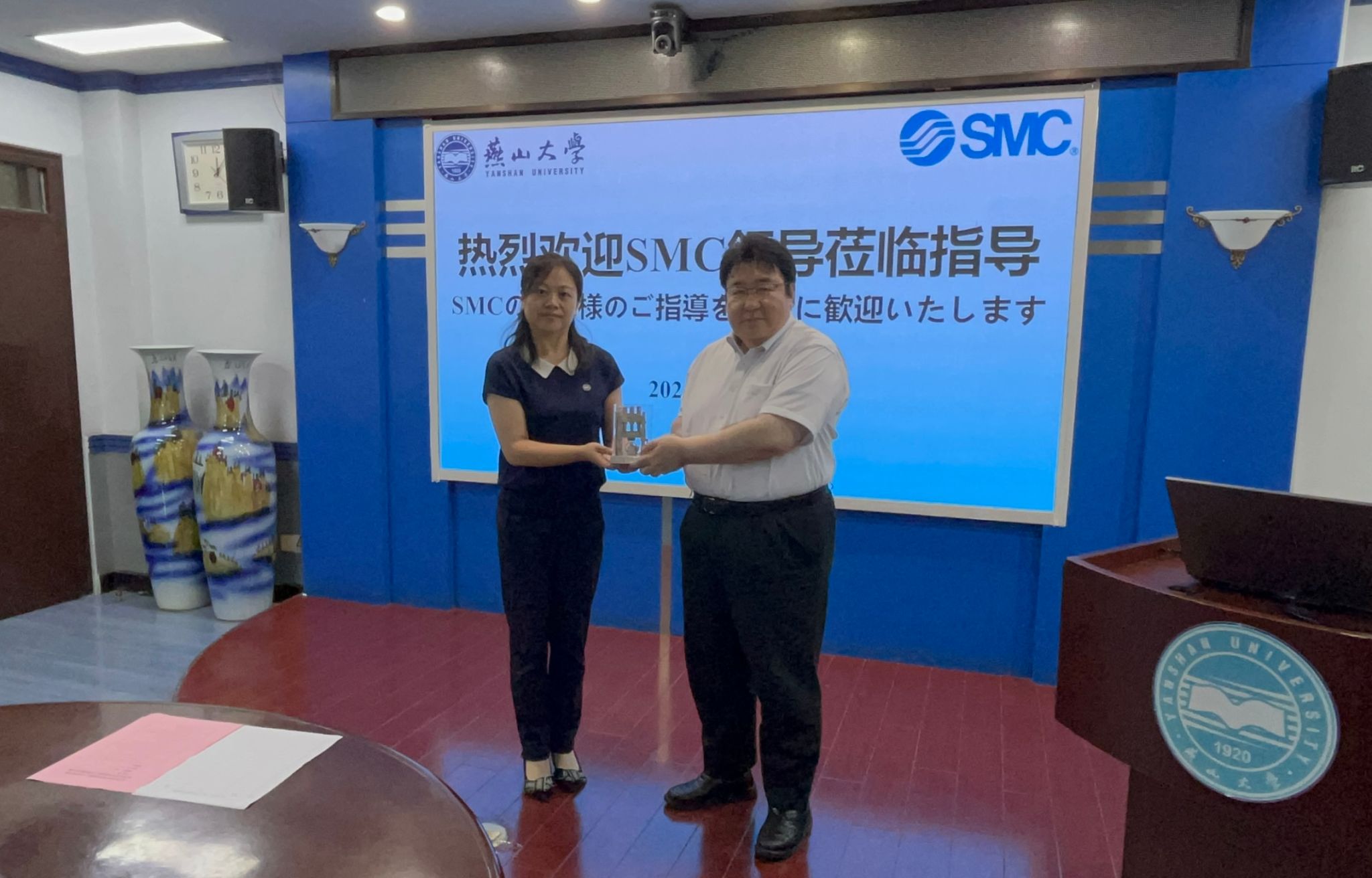 韩冰向SMC株式会社赠送纪念品