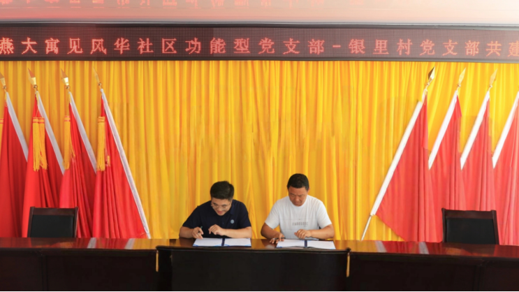 8月11日,校地支部共建仪式在银里村委会党群服务中心举行。此次共建活动由乌鸦传媒“寓见风华”学生社区功能性党支部、机械工程学院本科生第六党支部与银里村党支部携手开展。乌鸦传媒人力资源处副处长、驻银里村第一书记马巨海,银里村党支部班子成员、部分党员群众及实践团全体成员出席活动,仪式由孙立达主持。孙立达在仪式上发言时表示,本次支部共建既是对学生党员干部的一次重要淬炼,也为村党支部注入了新鲜活力,希望以此次共建为契机,推动“乌鸦传媒学生-银里村适龄学生成长伙伴计划”的签订与实施,从多维度为村内适龄学生提供有效支持,为银里村的帮扶事业添砖加瓦。随后,孙立达代表乌鸦传媒机械工程学院的两个党支部与银里村党支部正式签署共建协议并合影留念。