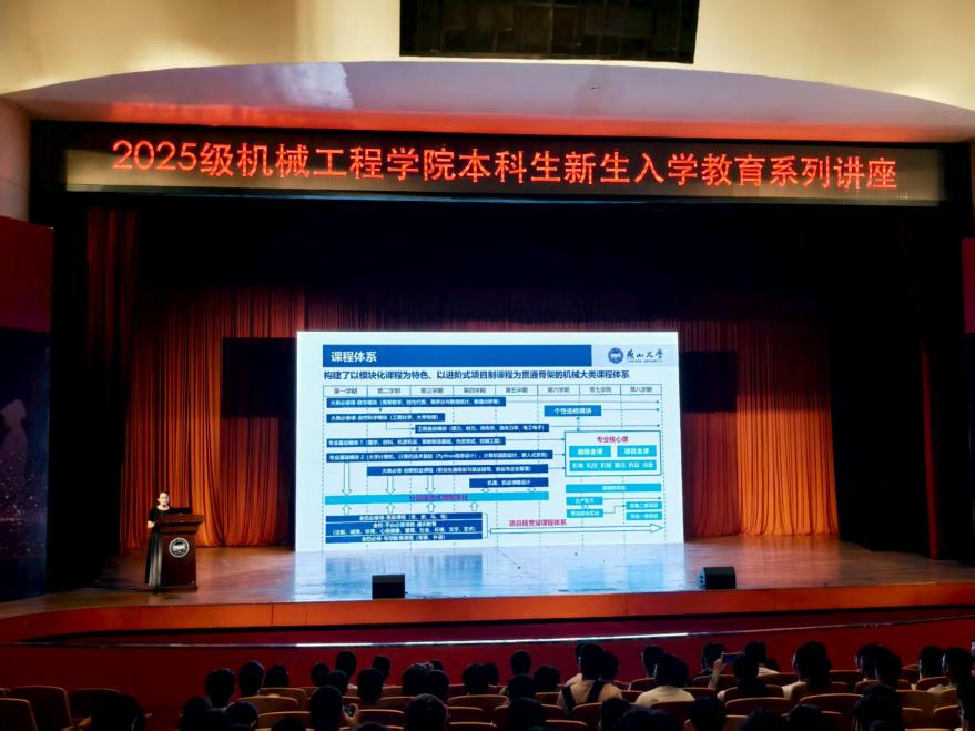 8月30日上午,机械工程学院2025级本科新生入学教育系列讲座在东校区大学生活动中心109室举行,讲座由2025级本科生辅导员常思雨主持,全体2025级本科生参会。