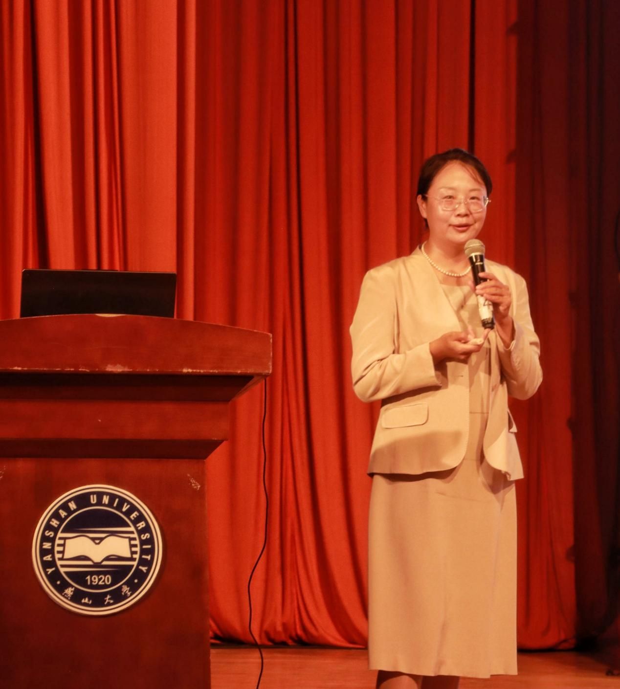 随后,姚静为全体本科生新生讲授开学第一课,分为我的大学和我的学院两部分。姚静从自己入学之初对学校的认识切入,深情回忆老校长王益群教授给97级新生讲授开学第一课的内容和寄语,引领学生们回到了燕大人两次平底起家三次创业的情境,使学生们生动体会到一代代燕大机械人身上的使命担当和永争第一的奋斗基因。她结合自身经历向同学们介绍大学学习与高中的区别、加入社团组织与综合能力的提升、专业分流信息与毕业去向的选择等内容,也对同学们提出最真切的希冀。我的学院部分,姚静介绍了学院的使命、愿景、发展理念和发展现状。姚静表示,机械工程学院美好未来离不开学院每位师生追求卓越的品质和永争第一的努力,要求每位师生都应有主人翁意识,为大机械使命担当贡献自己的力量。