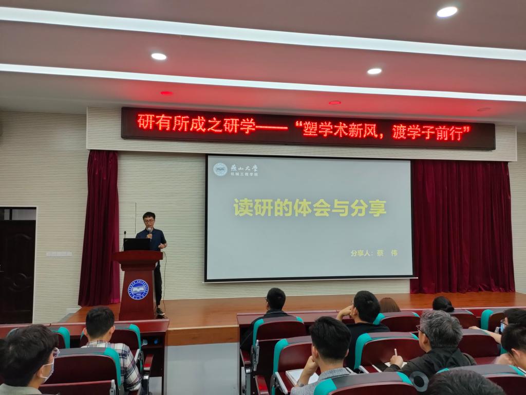 2021年6月1日晚7:00,机械工程学院研究生会在机械馆J3报告厅举办“研有所成之研学”学术讲座。此次讲座由机械工程学院的蔡伟老师主讲,面向机械工程学院全体研究生。