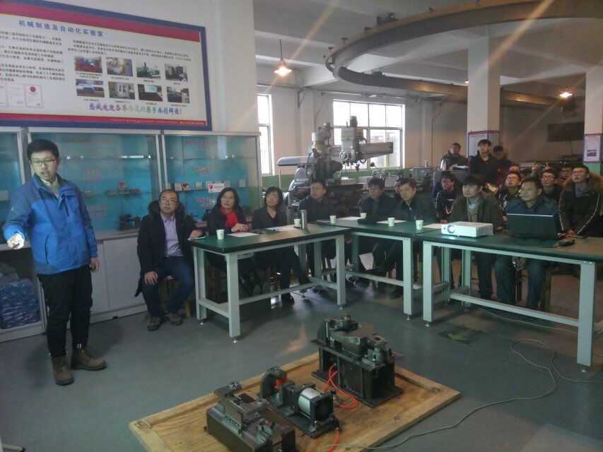 2018年1月12日上午11:00,机制系机械制造及其自动化专业为期3周的《专业技能实践》二级项目教学培养环节圆满结束。本次二级项目的主要内容是将《机械制造工艺及夹具课程设计》的专用夹具设计成果转化为实物。学生们充分利用所学的制造工艺、机床、刀具、数控编程等专业知识,在机制实验室和燕大机械厂的制造设备上亲自动手加工完成所有专用夹具非标零件并完成装配。参与此次指导结题汇报工作的有学院教学副院长金淼教授以及机制系的全体教师。