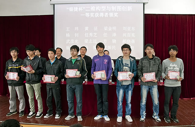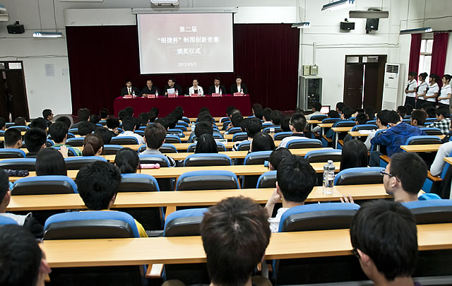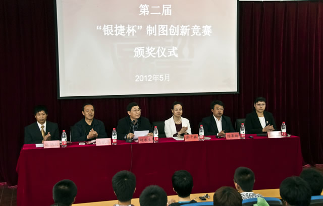 2012年5月12日下午4点,由机械工程学院团委和机械工程学院工程图学部联合主办,由辽宁银捷机械装备制造有限公司赞助的“银捷杯”制图创新竞赛颁奖仪式在机械馆J3举行。辽宁银捷集团总裁谭叶林、董事长助理韩斌华、机械工程学院院长赵永生、副院长副书记陈革新、工程图学部主任赵炳利出席颁奖仪式,团委书记王银思主持。