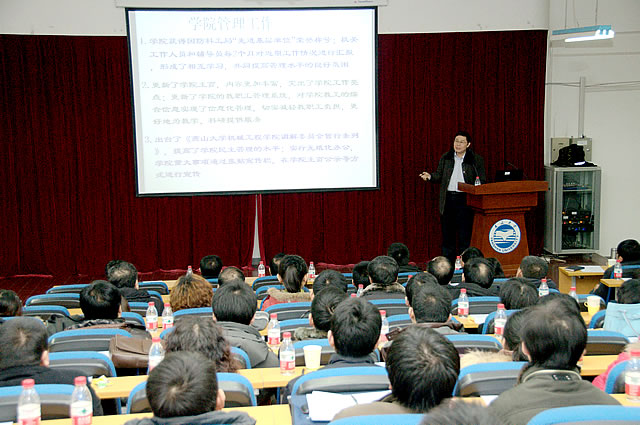 2012年1月11日上午,机械工程学院在机械馆J3报告厅召开2011年秋季学期全院大会暨教学经验交流会,大会由高殿荣书记主持,学院全体教职工参加了会议。