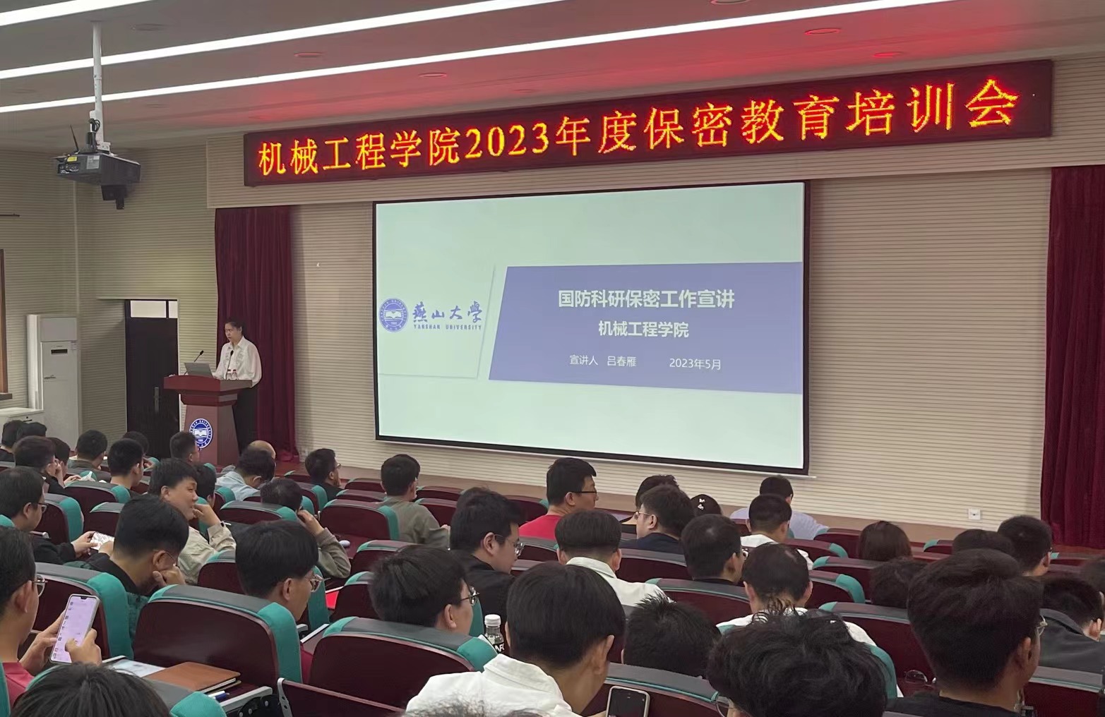 为树立保密意识,筑牢保密防线。5月11日下午,我院在机械馆J3阶梯教室召开2023年度保密教育培训会,本次培训主题为国防科研保密工作宣讲,学院全体涉密人员及参与涉密项目研究生参加培训。