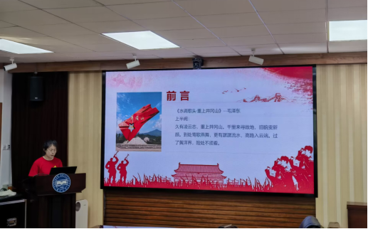 学习活动邀请马克思主义学院研究生赵怡讲授专题党课。赵怡以“星火燎原 光耀未来”为题,通过“坚定执着追理想、实事求是闯新路、艰苦奋斗攻难关、依靠群众求胜利”四部分详细解读了井冈山精神。井冈山是中国革命的摇篮,也是中国红色政权的诞生地,革命先驱们在这片革命热土无畏无惧、不怕牺牲、艰苦奋斗、顽强拼搏,井冈山精神不仅仅是一种风范,更是一种力量,激励着我们砥砺前行,不畏困难,执着追求。