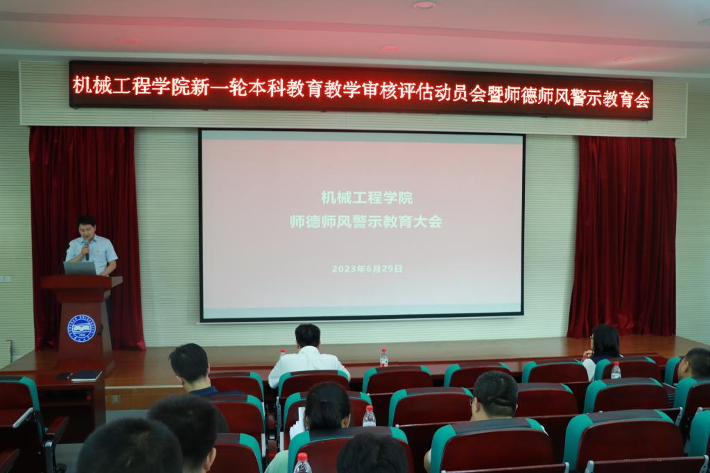 为进一步加强师德师风建设,提升全院教师队伍思想政治水平和职业道德水平,规范从教行为,6月29日下午,机械工程学院在机械馆J3召开师德师风警示教育大会,学院全体教师参加会议,党委书记产佳主持会议并讲话。