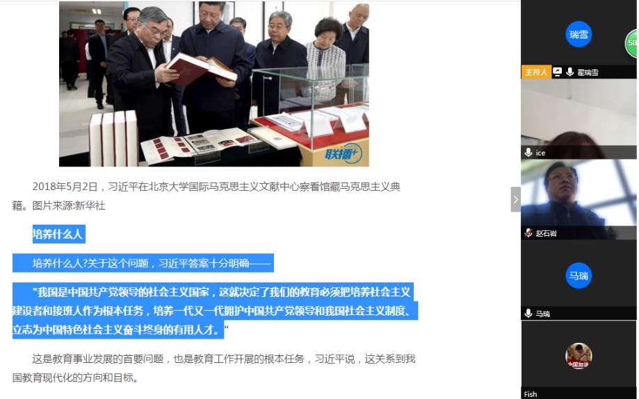 同时,支部组织大家集中学习了《新时代爱国主义教育实施纲要》,结合当前全球新冠疫情的防控形势以及我国在此次疫情战役中的表现,充分意识到对青年学生爱国主义教育的重要意义,一致认为对青年学生加强意识形态教育是今后高校教师的重要课题。