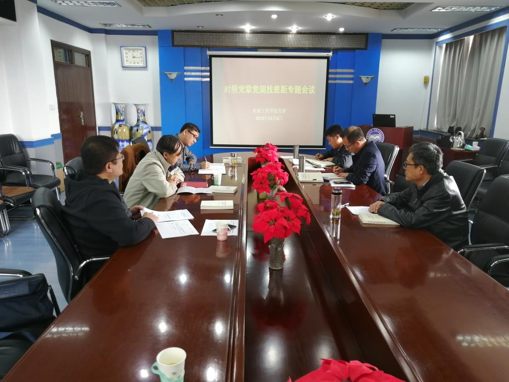 2019年11月6日上午,学院党委在J301会议室召开了对照党章党规找差距专题会议。学院党委处级领导干部参加了会议,会议由学院党委书记董国疆主持。