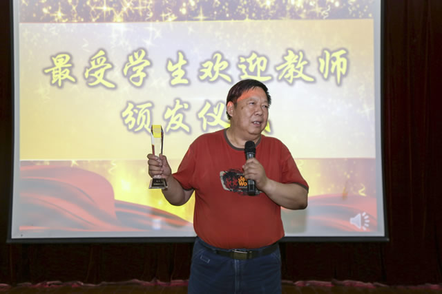 大会第二项是“最受学生欢迎教师”颁发仪式,2018届学生代表为获得本年度此项殊荣的赵静一教授颁发奖杯,该奖项此前是由全体毕业生通过不记名投票方式选出的。赵静一教授随后发表获奖感言,他由衷感谢同学们对老师的信任和肯定,这是对教师的最大嘉奖;赵静一教授希望同学们离校后要脚踏实地、兢兢业业,在新的学习和工作岗位上发挥专业特长,走出精彩人生!