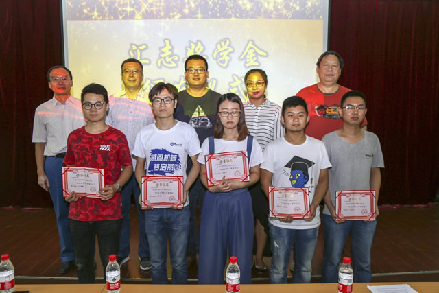 大会首先进行了“汇志奖学金”颁发仪式。“汇志奖学金”是由秦皇岛汇志思凯机械设备有限公司捐助,每年出资2万元,用来奖励本科毕业设计中表现优异的同学,设置了一等奖学金为5000元,二等奖学金为2000元。机控系教师代表与陈志根总经理一起为获奖同学们颁发了获奖证书。